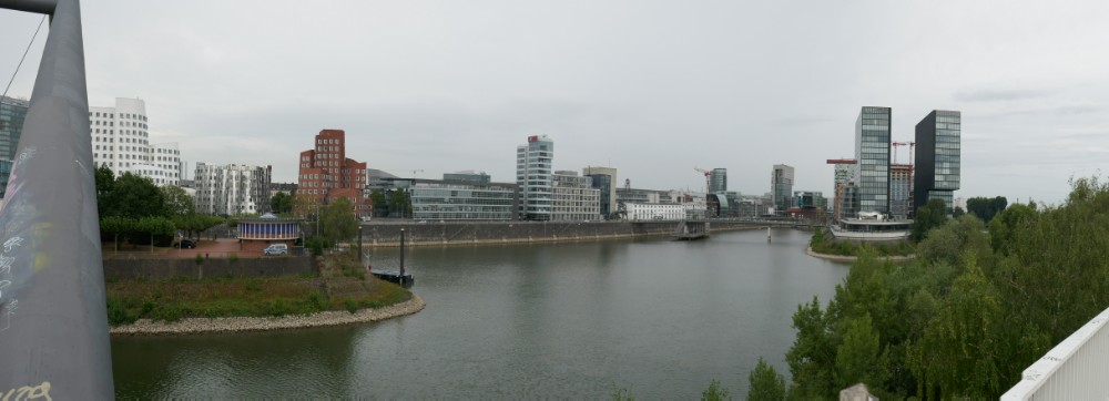 Besonders auf dem Weg nach Düsseldorf, wo es wohl auch noch mehrere Varianten gibt, von denen wir (hauptsächlich Stefan) nicht die nehmen wollten, die direkt durch die städtischen Vororte entlang großer Straßen ins Zentrum führt, sondern die, die am Rhein entlang naturnah und auf einem Bogen nach Düsseldorf bringen sollte, haben wir uns öfter begannen, was besonders, da wir schon fast 70km in den Beinen hatten und es immer mal wieder zu regnen drohte, etwas nervig war.
