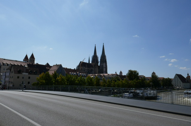 Aber heute morgen sind wir trotzdem aufgebrochen, obwohl ich ganz sicher war, dass wir bald wieder umkehren würden, weil Beate schon während der Bahnfahrt zu große Schmerzen haben würde. Doch zwei Überraschungen erwarteten mich: Ersten kamen wir völlig unspektakulär nach Regensburg, unsere Fahrt war geradezu langweilig und Beate hat durchgehalten, so dass wir um halb eins in Regensburg ersteinmal in einem indischen Restaurant gemütlich Mittagessen konnten, bevor wir dann endlich auf die Räder gestiegen und losgefahren sind.