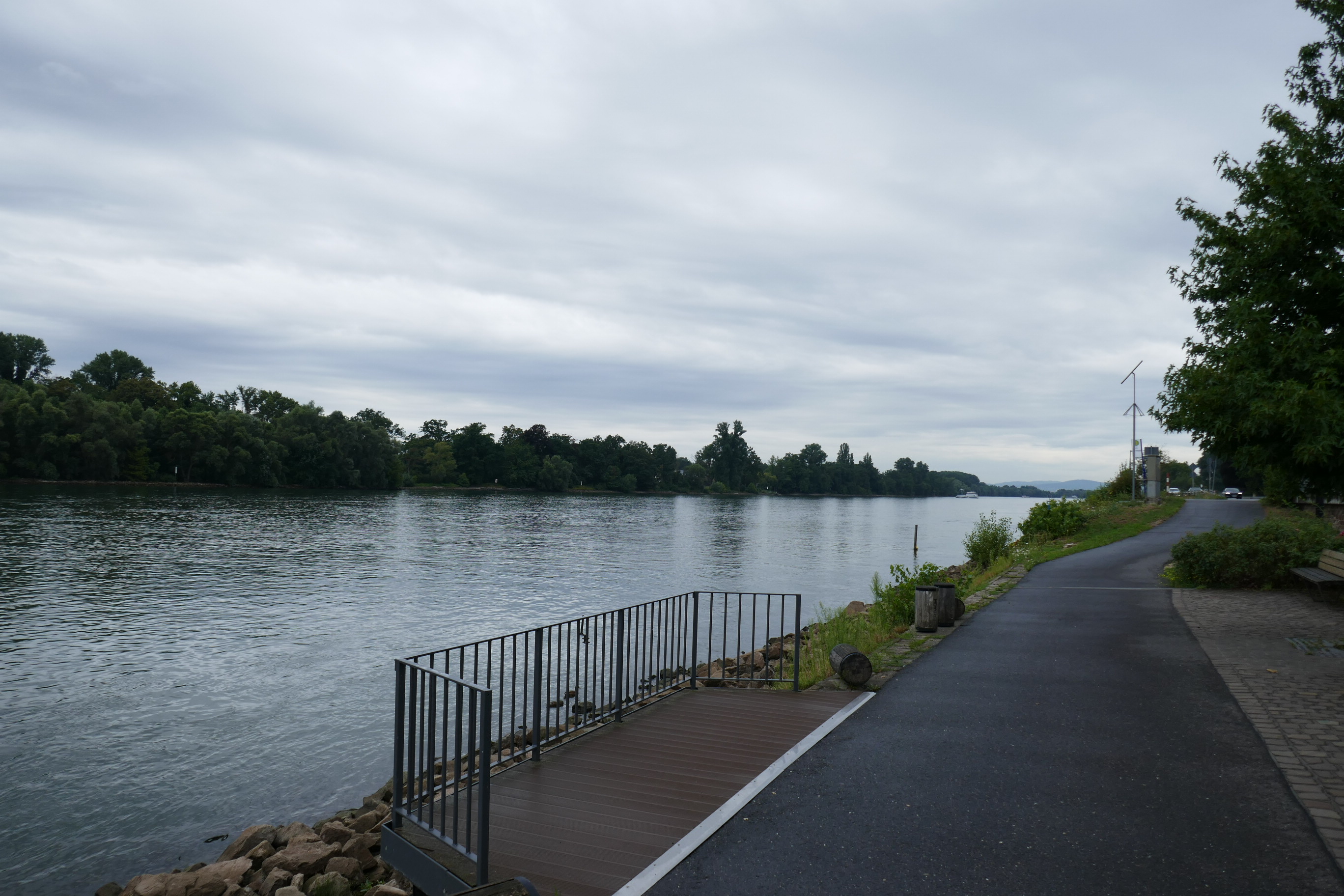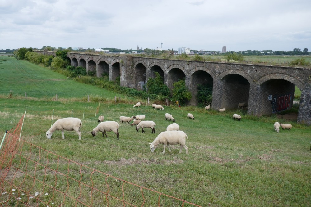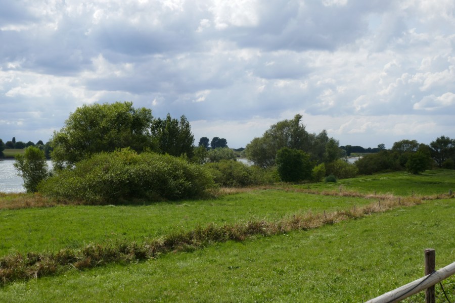 Überhaupt Fährfahrten, bei der Planung unserer Tour war mir gar nicht bewusst, wie viele Fähren wir benutzen müssen. Irgendwie habe ich mir vorgestellt, dass wir mehr oder weniger immer an Gleiverbindung Rheinufer entlang fahren bzw. von Zeit zu Zeit mal eine Brücke benutzen. Aber schon zwischen Mainz und Koblenz, die Strecke unserer ersten beiden Etappen, gibt es keine einzige Brücke, so dass wir schon am ersten Tag eine Fähre benutzen mussten. Erst recht hier in den Niederlanden, wo die Landschaft durch viele Rheinarme, Kanäle und weitere Wasserläufe zerteilt ist und nicht überall, erst recht nicht in den noch halbwegs natürlichen Gebieten, Brücken sind, geht es häufig nur mit Fähren weiter. Im Schnitt sind wir so jeden Tag ein- bis zweimal mit der Fähre gefahren. Ich glaube, ich bin in meinem ganzen Leben nicht so oft Fähre gefahren, wie in den letzten 10 Tagen.