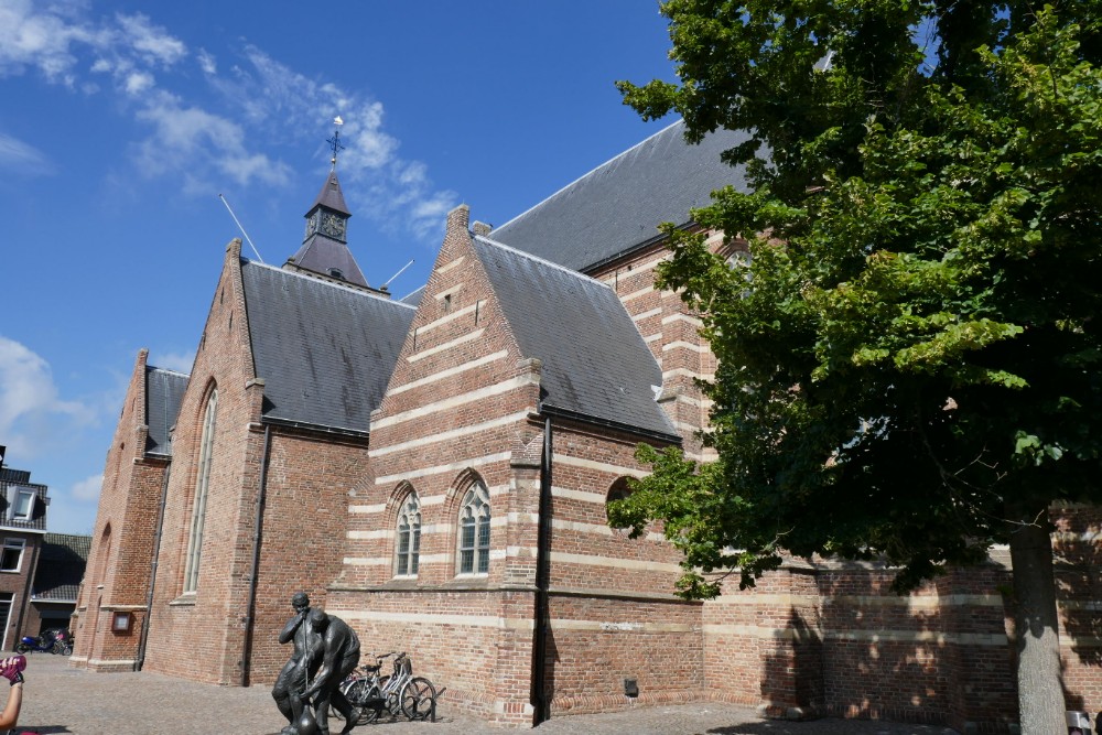 Im weiteren Verlauf führte der Weg nach Leerdam, einem Städtchen, das nicht nur etwas mit dem Käse gleichen Namens zu tun hat, sondern vor allem als Glasstadt bekannt ist, was mir bislang noch nicht bewusst war. Aber schon gleich am Ortseingang warb die Stadt mit dem Beinamen Glasstadt und auf dem Platz vor der Kirche war kein großes Käserad aufgebaut, sondern ein Glasbläserdenkmal.