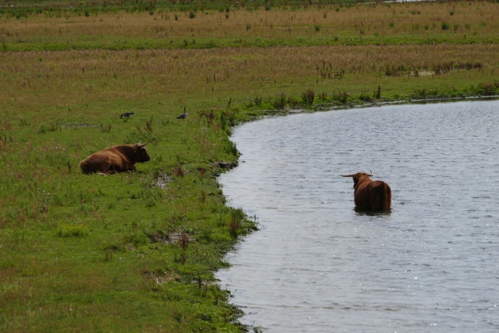 Aber mein Thema heute sollten ja die Gegensätze sein. Der nächste war der Nationalpark „De Biesbosch“, der im Gegensatz zu dem Nationalpark am Vortag nicht von Wald geprägt war, sondern vor allem von Wasser, Feuchtwiesen mit weidenden Rindern oder Schafen, viel Gebüsch und Wasservögel, die dort ihre Brut- und Rastgebiete haben.